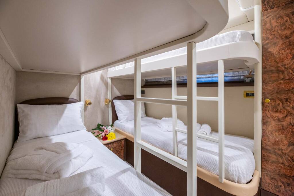 1 x Twin cabin with 2 single and 2 permanent fixed bunk beds.