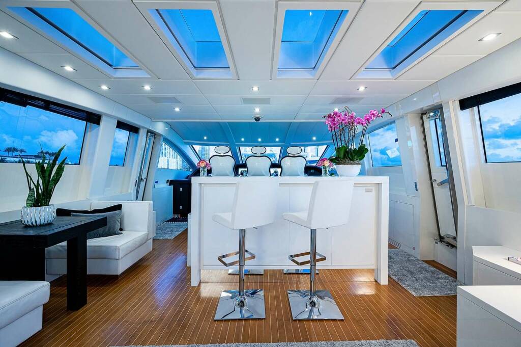 Luxusná motorová loď Cassinella, postavená v roku 2017, kotví v Bahamas, USA - Florida East Coast. Má 4 kajút, môže ubytovať 9 osôb.