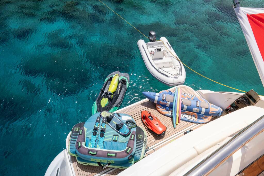 Koukles also features a great list of water toys including fitness equipment, a jet ski, a Seabob, water scooters, SUPS, inflatables and 4m Yamaha tender and more! She has a top speed of 24 knots, and also features zero speed stabilisers to ensure smooth cruising.