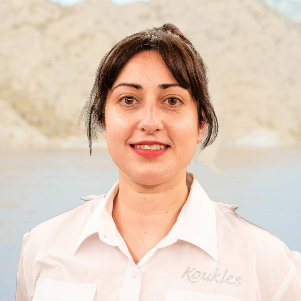 Eleni Mintza brings a wealth of experience and a diverse skill set to her role as Chief Stewardess on board Koukles. With a background spanning from luxury yachts to commercial vessels, Eleni has established herself as a versatile and capable stewardess.