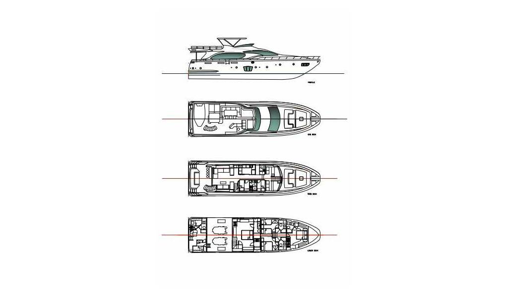 Other Entertainment: SAT TV in salon and cabins self-location SONOS audiovisual equipment with domotic controls throughout the boat, Android LED TV system throughout the boat, Home cinema in every cabin (as well as Bluetooth and HDMI) CCTV Raymarine waterproof cameras in engine room and cockpit, Hi Fi Stereo, Wi-Fi, Charger Station / USB / BT