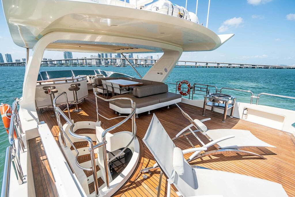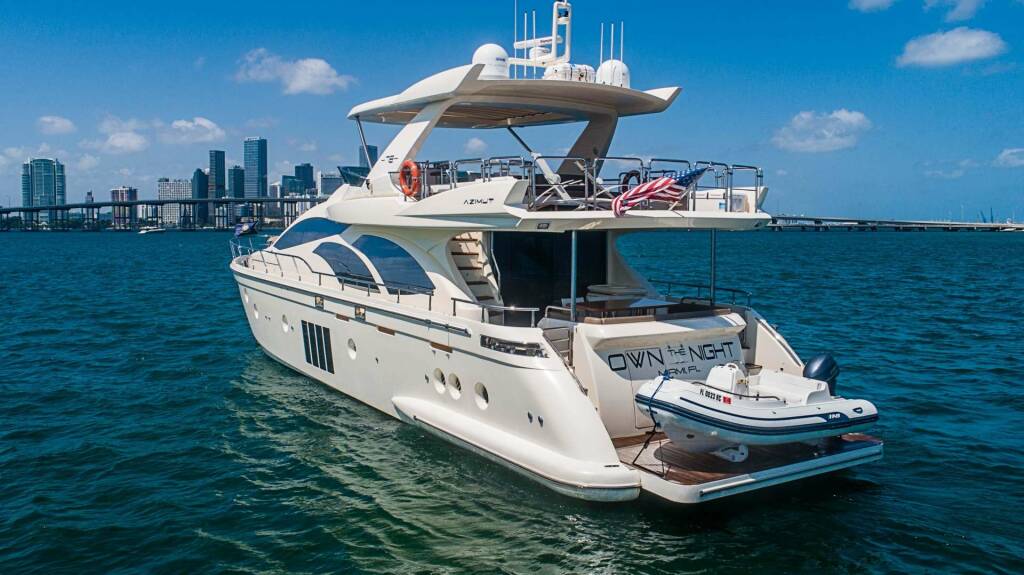 Luxusná motorová loď OWN THE NIGHT, postavená v roku 2012, kotví v USA - Florida East Coast. Má 4 kajút, môže ubytovať 10 osôb.
