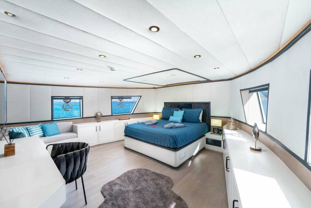 Accommodation: Calm Down has 6 Cabins; 3 Master, 2 Double, 1 Twin all en-suite