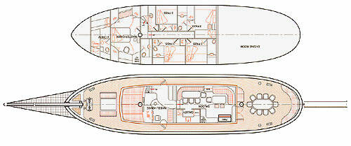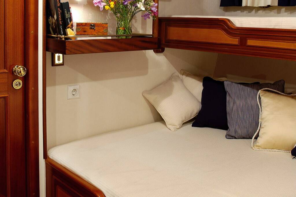 Accommodation: 5 double cabins. Two of them with 1 pullman bed each.