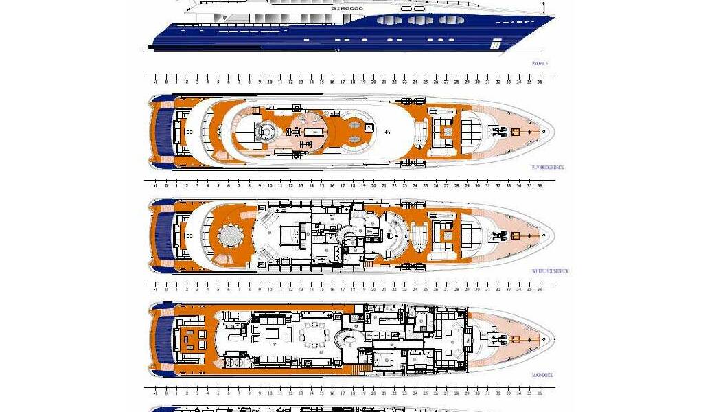 Luxusná motorová loď SIROCCO, postavená v roku 2006, kotví v W. Med -Naples/Sicily, W. Med -Riviera/Cors/Sard.. Má 6 kajút, môže ubytovať 12 osôb.