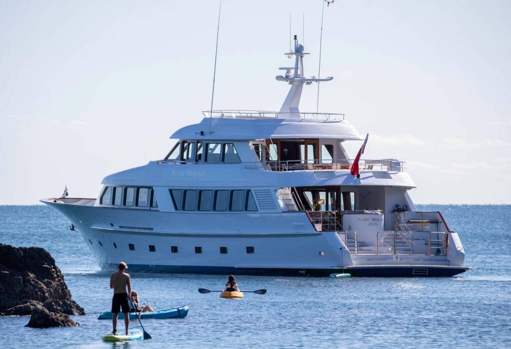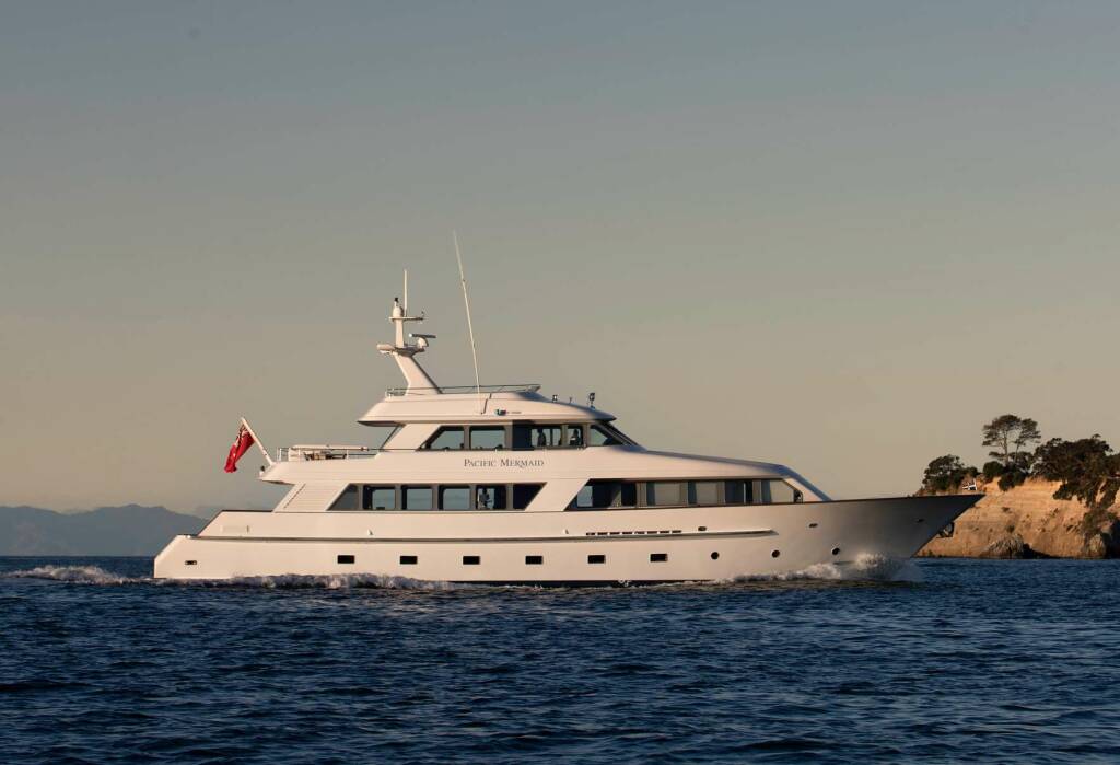 Luxusná motorová loď PACIFIC MERMAID, postavená v roku 1995, kotví v New Zealand, French Polynesia. Má 4 kajút, môže ubytovať 8 osôb.