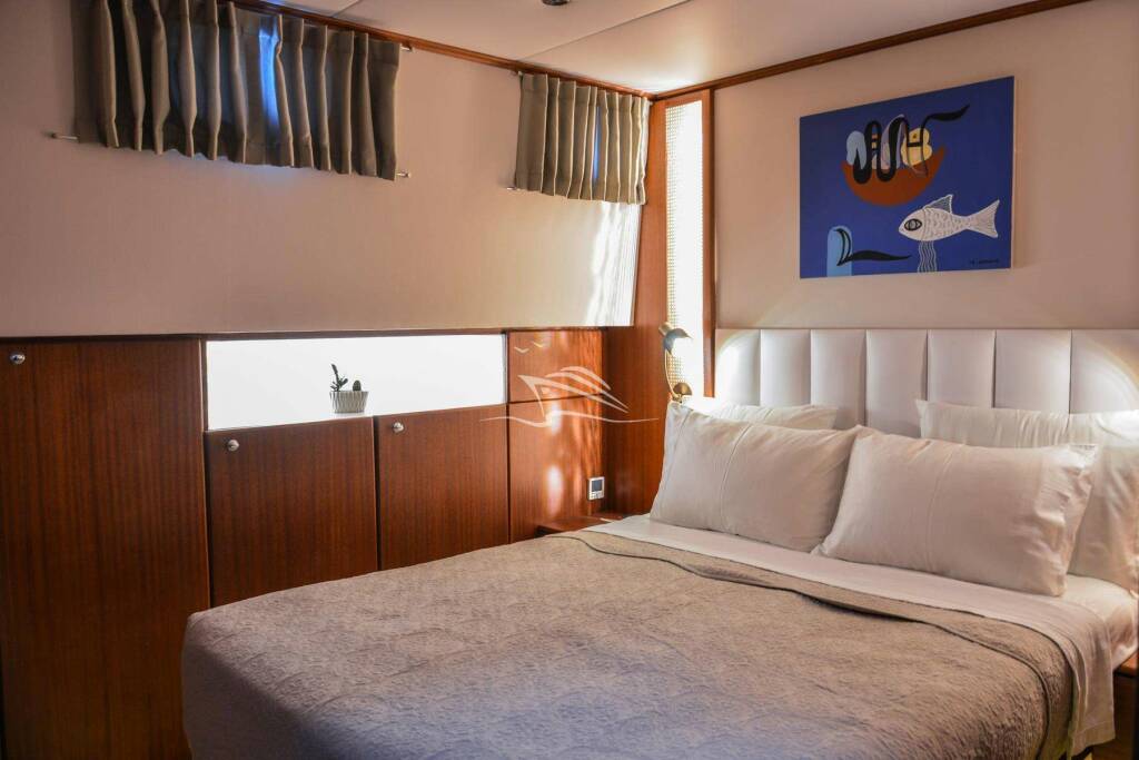 Accommodation: 1 Master Suite (with large sofa) plus 4 double guest cabins (Master cabin with king sized bed, 4 equal double guest cabins with queen sized bed each). Each guest cabin has a bathroom.