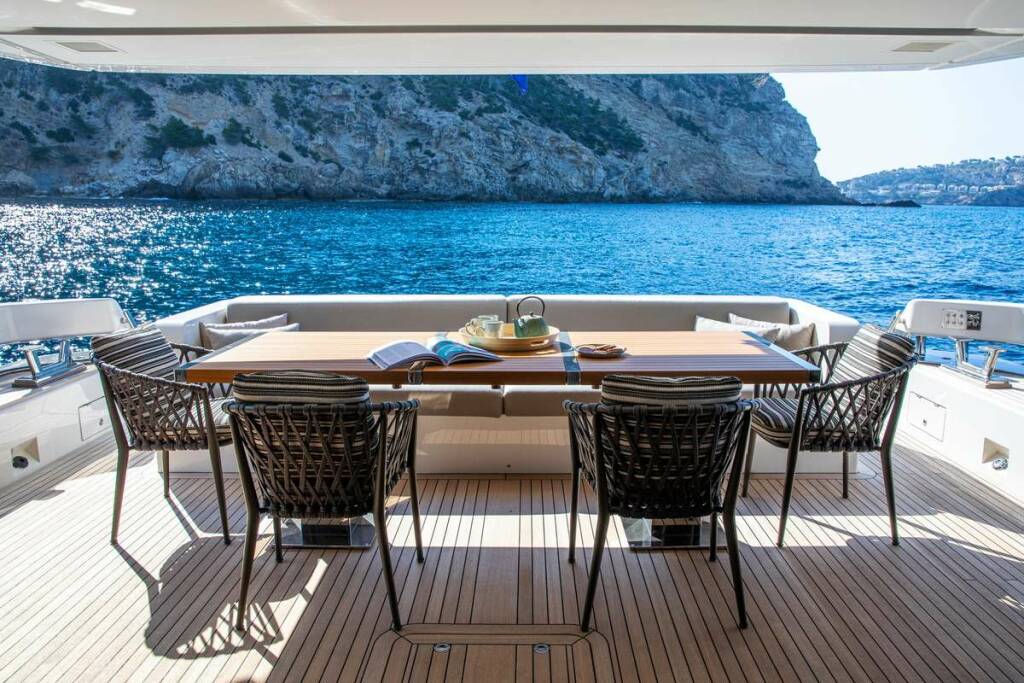Deck is controlled by Crestron with speakers on the Flybridge, Aft Deck and Bow.