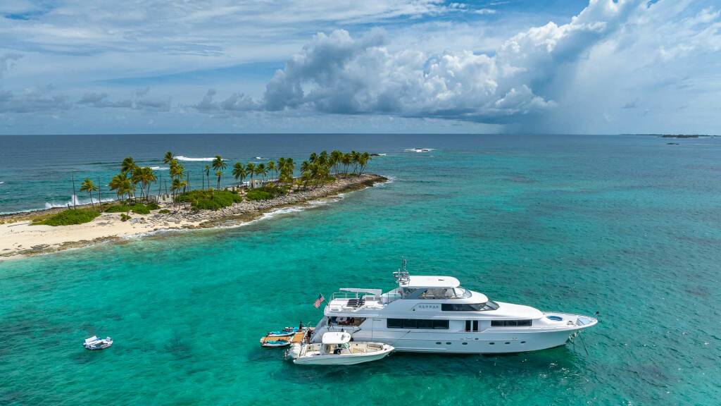 Luxusná motorová loď HANNAH, postavená v roku 2003, kotví v Bahamas, USA - Florida East Coast. Má 4 kajút, môže ubytovať 9 osôb.