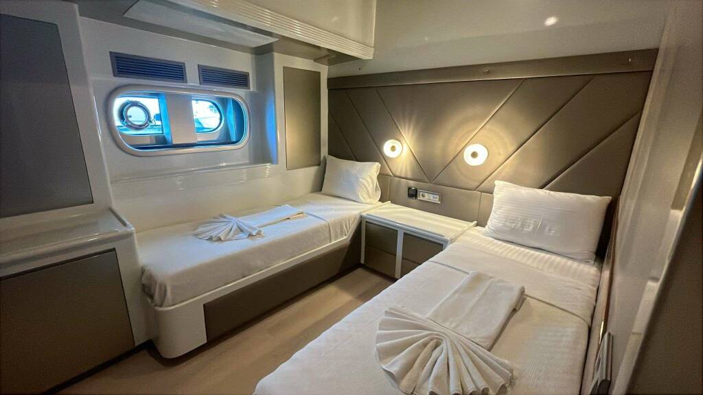 Luxusná plachetnica ANGELO III, postavená v roku 2024, kotví v Turkey. Má 5 kajút, môže ubytovať 10 osôb.