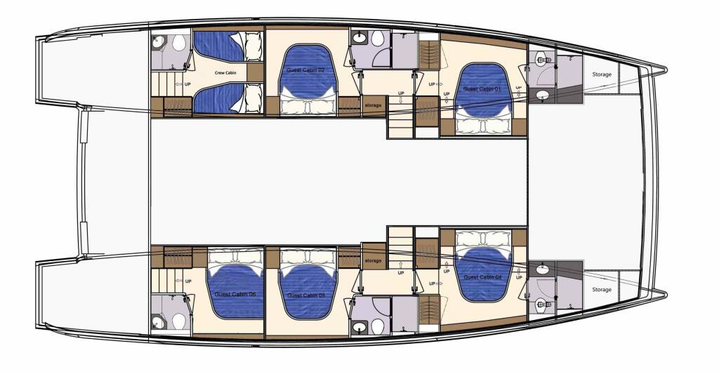 Väčšina jácht môže podľa vnútorného usporiadania ubytovať 6 až 12 hostí.