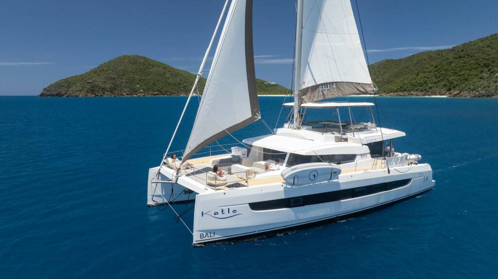 Luxusný katamarán KATLO, postavená v roku 2023, kotví v Bahamas, Caribbean Virgin Islands (BVI). Má 3 kajút, môže ubytovať 6 osôb.