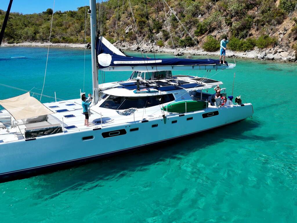 Luxusný katamarán AWATEA, postavená v roku 2019, kotví v Caribbean Virgin Islands (BVI). Má 5 kajút, môže ubytovať 10 osôb.