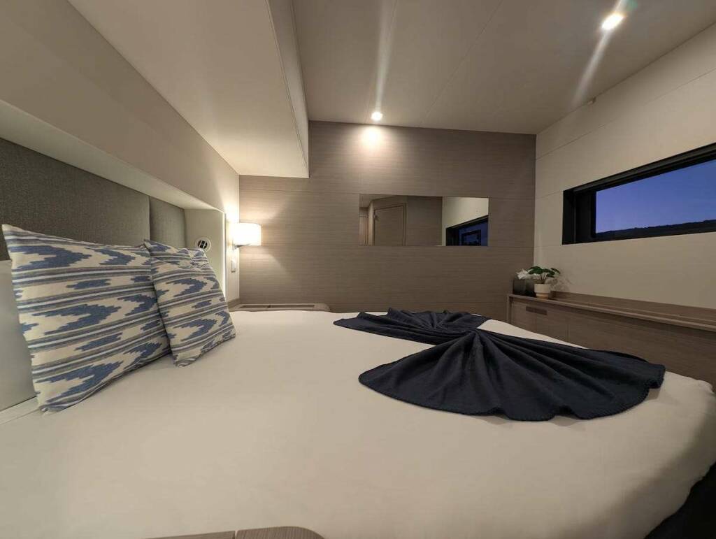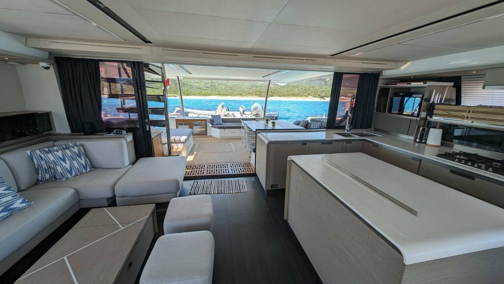 Luxusný katamarán INSPIRANTE, postavená v roku 2021, kotví v W. Med -Naples/Sicily, Croatia. Má 4 kajút, môže ubytovať 8 osôb.