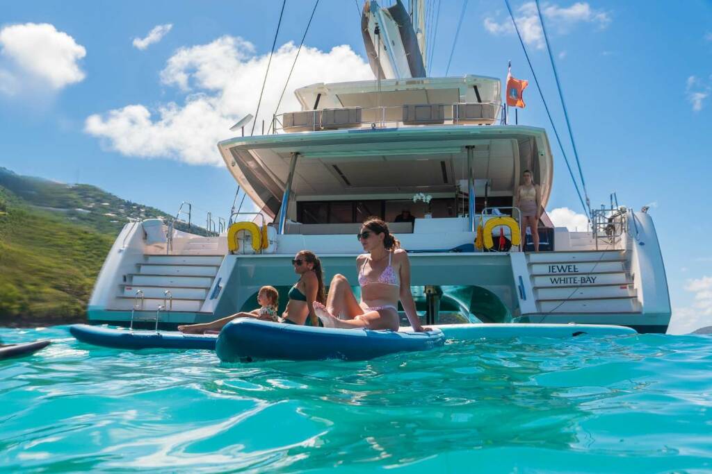 Luxusný katamarán JEWEL (67), postavená v roku 2023, kotví v Caribbean Virgin Islands (US/BVI), Caribbean Leewards. Má 4 kajút, môže ubytovať 8 osôb.