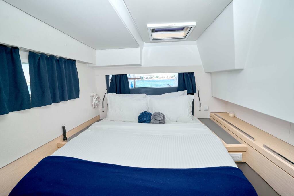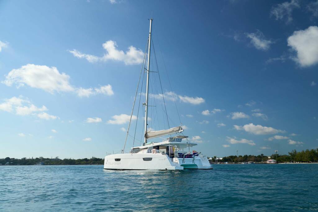 Luxusný katamarán Stella Gazer, postavená v roku 2018, kotví v Bahamas. Má 4 kajút, môže ubytovať 8 osôb.