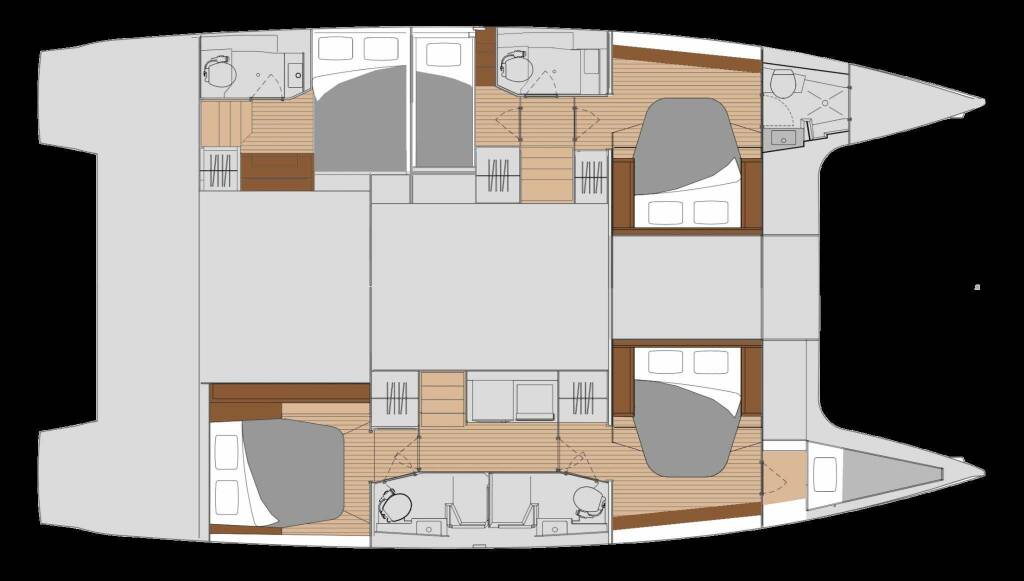 Väčšina jácht môže podľa vnútorného usporiadania ubytovať 6 až 12 hostí.