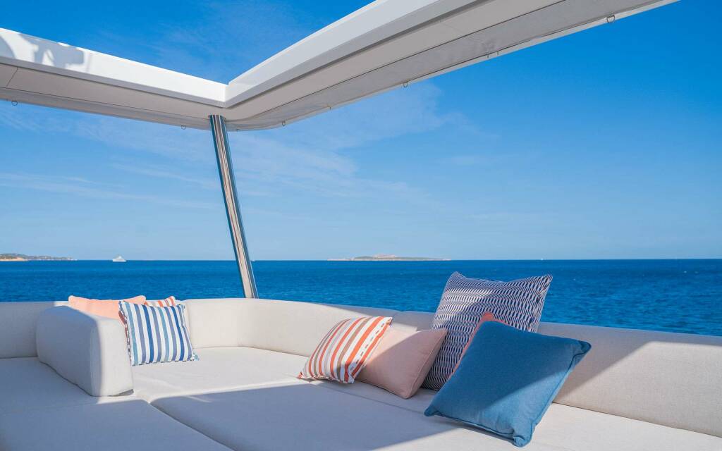 Additional Exterior Accommodation Details: Cockpit cushions, Cockpit speakers, Teak Cockpit, Teak deck, Bimini, Swimming platform with ladders to the water, Hydraulic gangway.