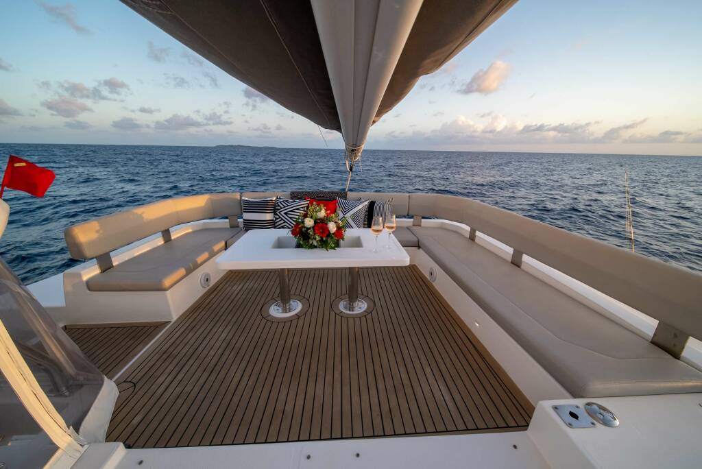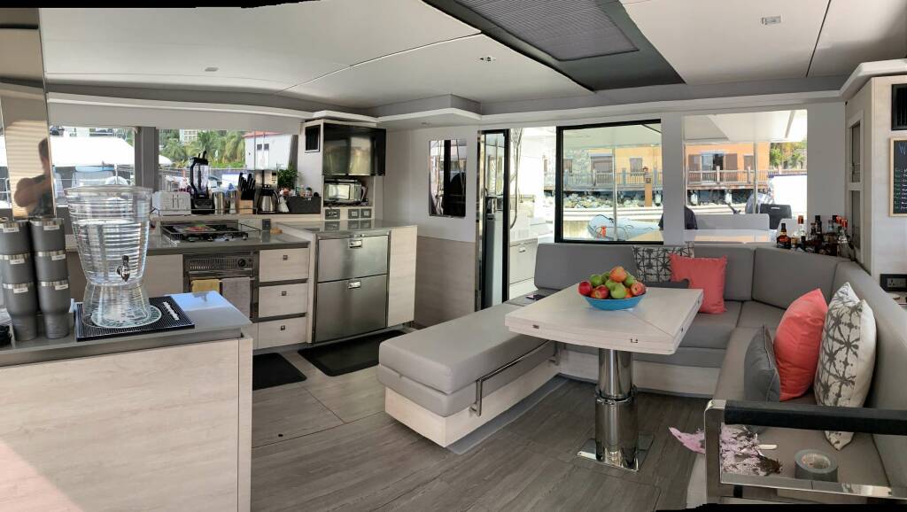 Salon has lounge area, galley, nav station, formal dining area and door opening to front cockpit as well as aft deck. Salon can be opened with beautiful natural breeze and is also fully air conditioned for guests comfort.