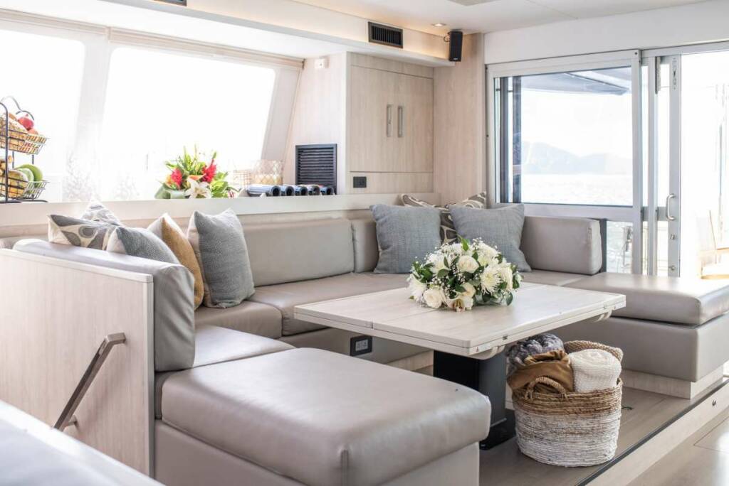 Two Additional Guest Cabins — Equal in comfort, each offers a queen berth, en-suite head, ambient lighting, air-conditioning, and high-end eco-friendly toiletries for a stay that is as gentle on the planet as it is indulgent.