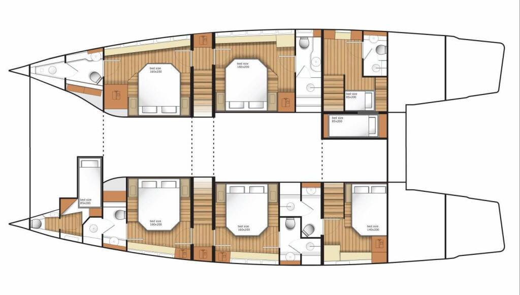 Väčšina jácht môže podľa vnútorného usporiadania ubytovať 6 až 12 hostí.