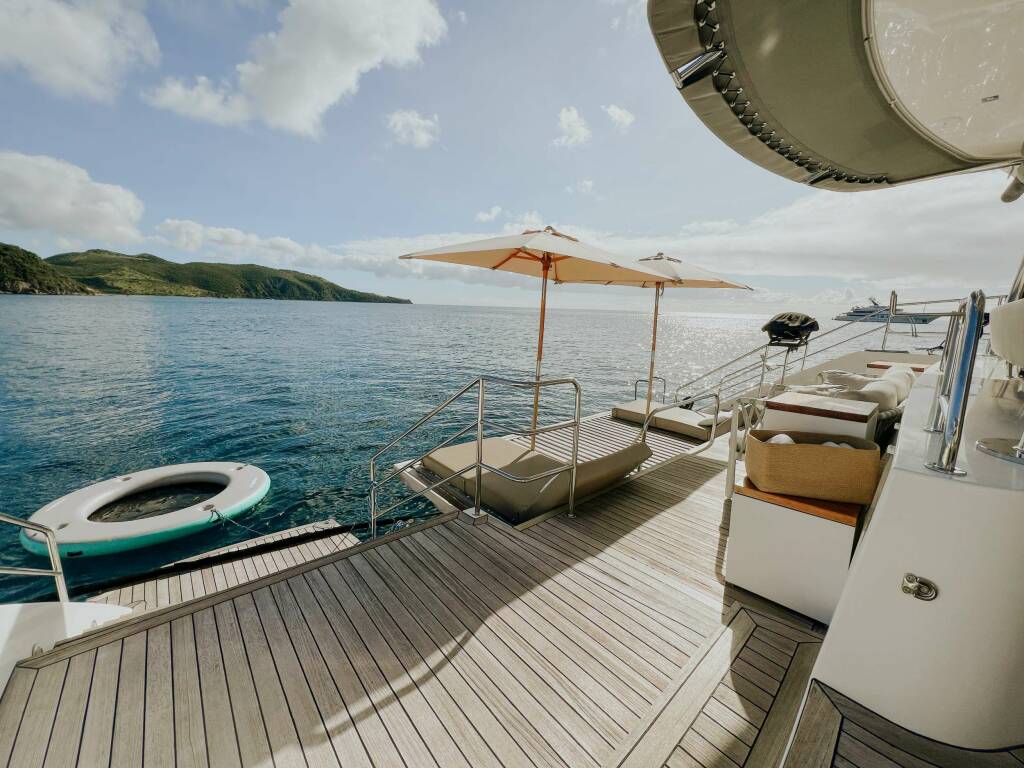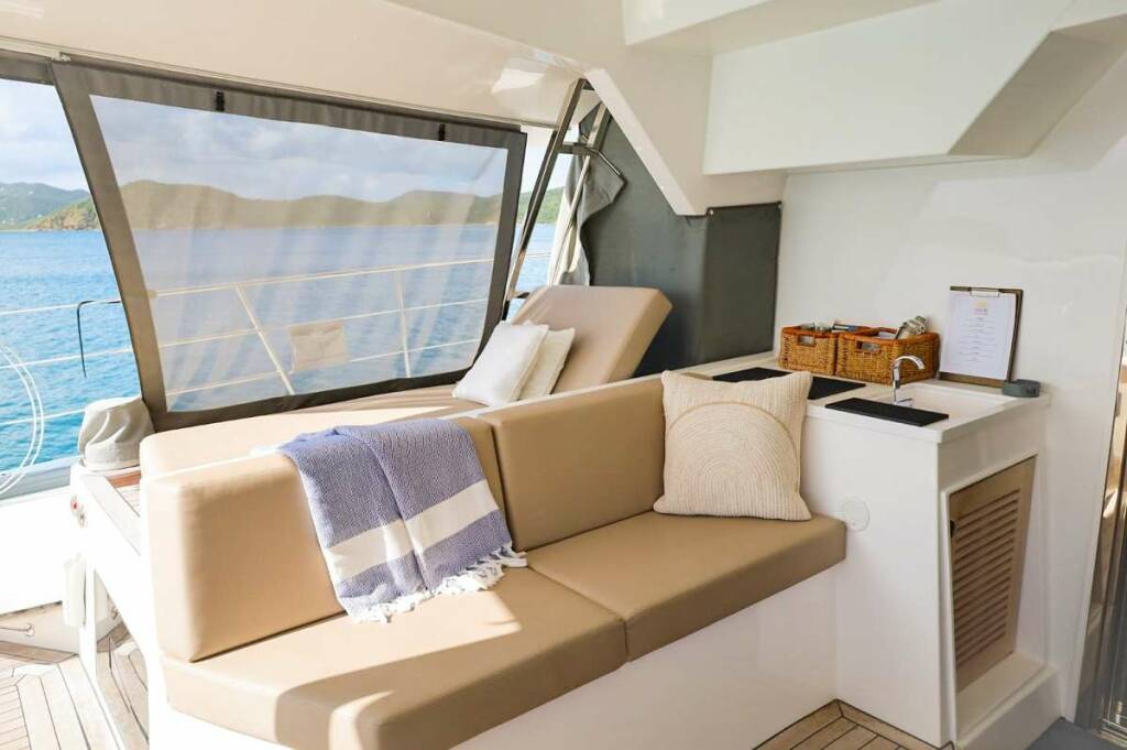 Relax and enjoy a smooth sail on the comfortable sun lounge on the flybridge with sun awning. Privilege catamarans are well known for their outstanding sailing performance.