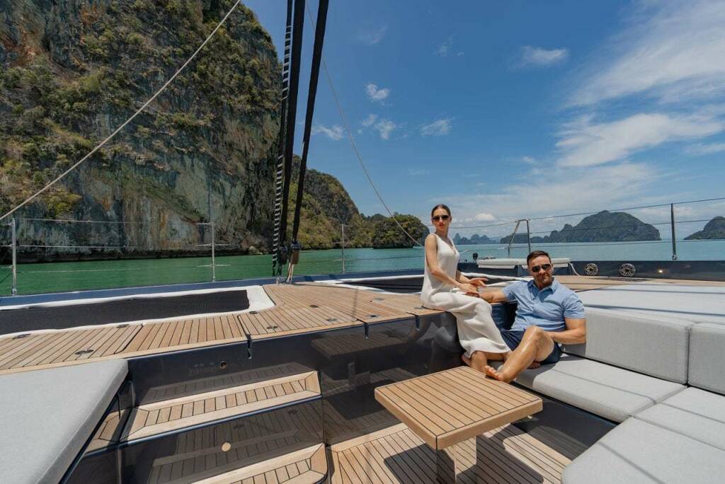 Luxusný katamarán E-motion, postavená v roku 2025, kotví v South East Asia. Má 4 kajút, môže ubytovať 8 osôb.