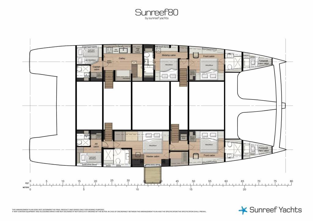 Niektoré superjachty nad 80 metrov, v súlade s medzinárodnými certifikáciami, môžu ubytovať až 36 osôb.
