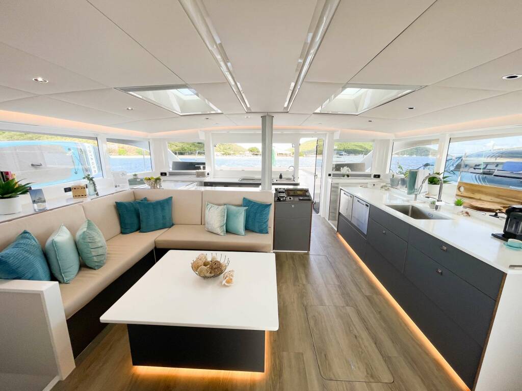 Luxusný katamarán SEVEN, postavená v roku 2023, kotví v Caribbean Virgin Islands (BVI). Má 5 kajút, môže ubytovať 10 osôb.