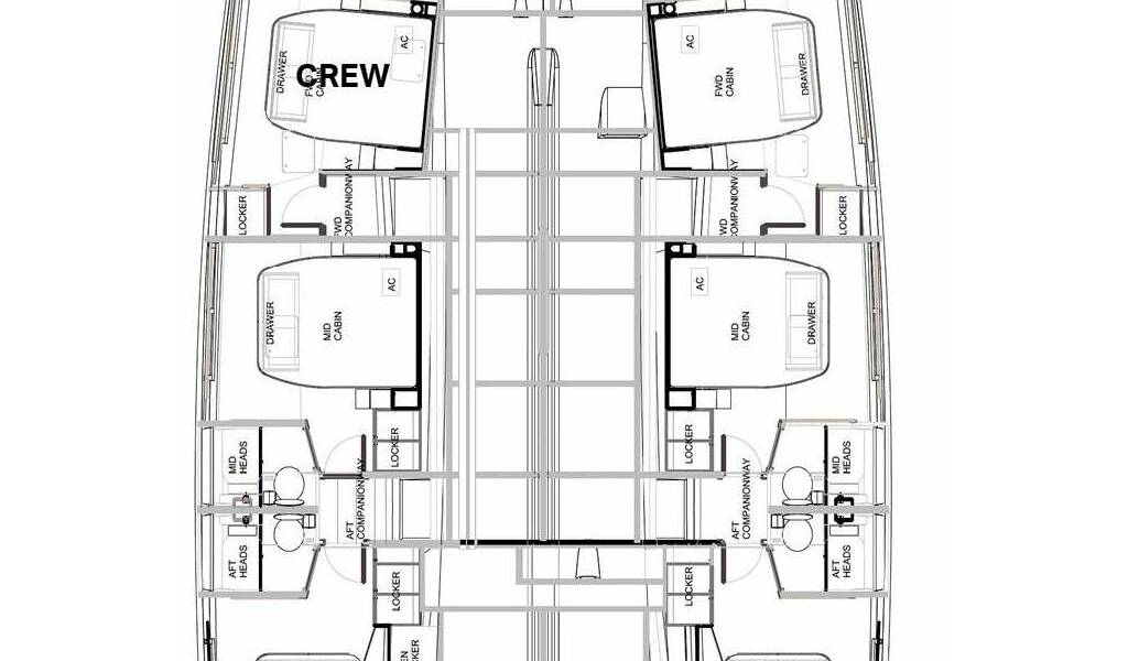 Väčšina jácht môže podľa vnútorného usporiadania ubytovať 6 až 12 hostí.