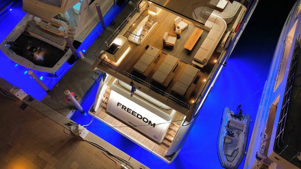 Power catamaran FREEDOM, postavená v roku 2022, kotví v Bahamas, USA - Florida East Coast. Má 5 kajút, môže ubytovať 11 osôb.