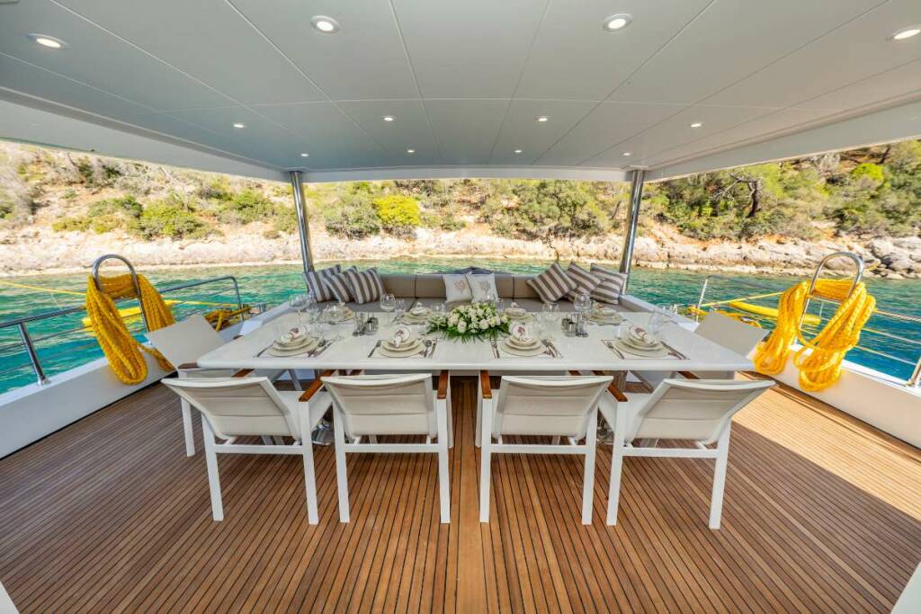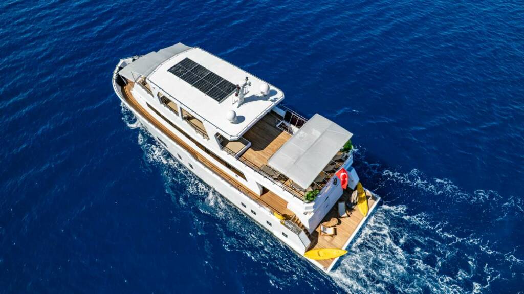 Luxus - Katamaran LILA, Baujahr 2025 liegt in Turkey vor Anker. Sie hat 5 Kabinen, bietet Platz für 12 Personen.