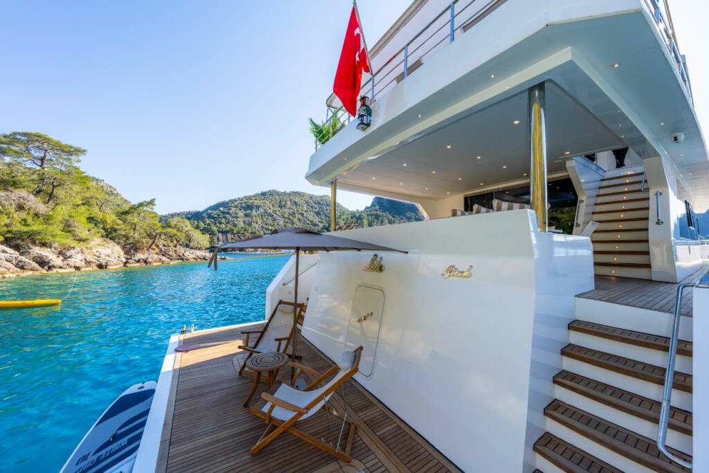 For the provisioning and All Inclusive Services, our standard very rich services costs € 735 pp /week including twice sea food dinners, or upgrade option at € 795 pp week, which includes Luxury Full Board with minimum 3 seafood dinners, one of which with lobsters, total of 6 dinners onboard and guests take one dinner ashore where they wish, freshly squeezed orange juice and fresh coffee with breakfasts, sun downer snacks, afternoon tea and coffee and homemade cakes, standard soft drinks all day, complimentary 6 bottle case of good quality local wine, both options include private airport transfers in Turkey.