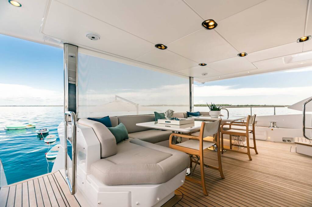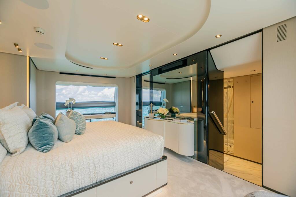 Accommodation: MAREA LA NAUTICA welcomes up to 10 guests in five beautifully-appointed staterooms. The split-level main-deck master suite is full beam with a king-size bed, generous closet space and floor-to-ceiling windows to allow guests to feel one with the sea. Four staterooms are situated on the lower deck; two VIP cabins with queen-size beds, and two twin cabins forward. MAREA LA NAUTICA’s professional and experienced crew of four ensures each guest’s every need is taken care of during their charter.