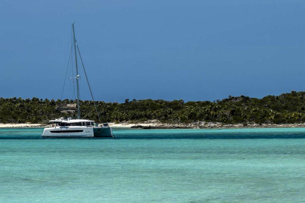 Luxus - Katamaran KITTIWAKE, Baujahr 2020 liegt in Bahamas vor Anker. Sie hat 3 Kabinen, bietet Platz für 6 Personen.