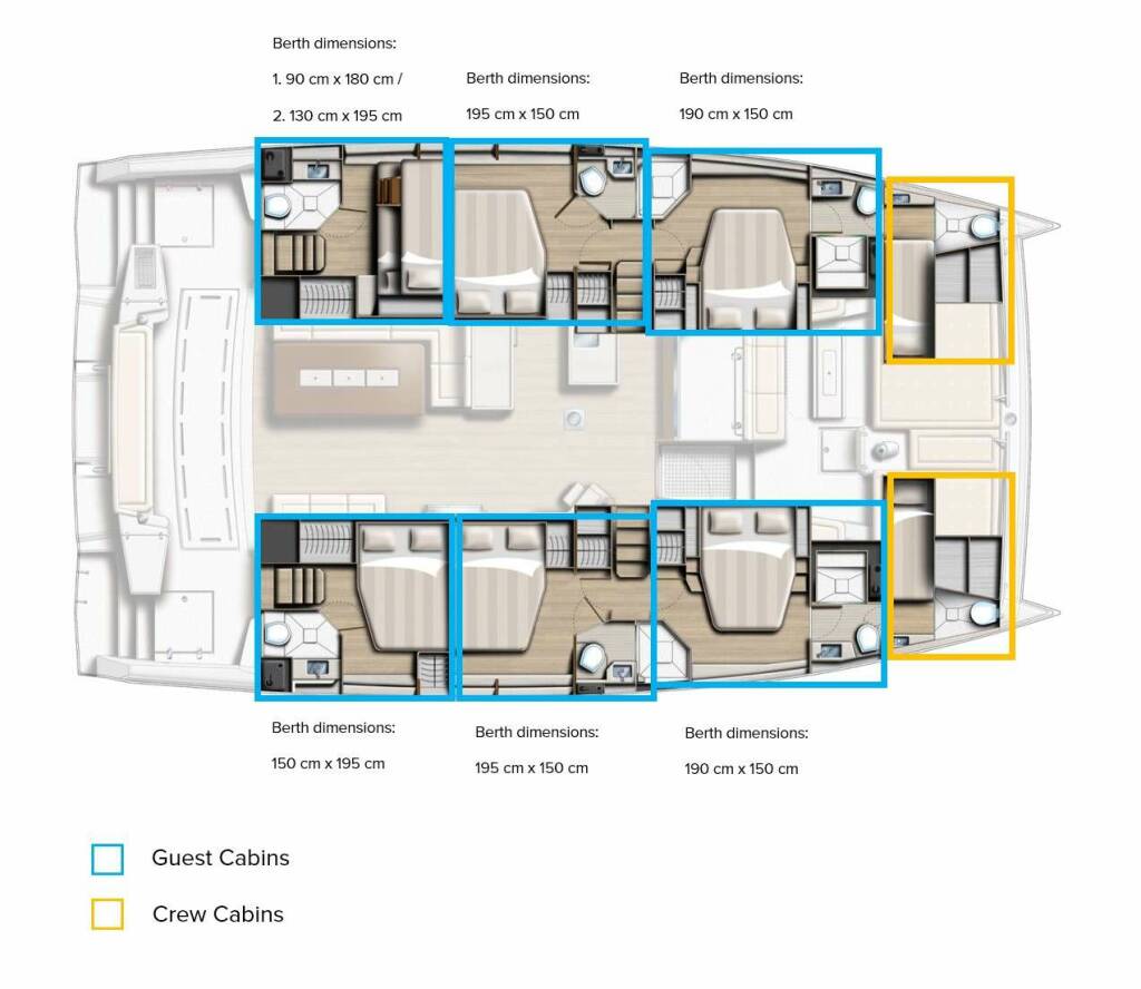 • Katamaran für großzügige Räume, überlegene Stabilität und mehr Privatsphäre.