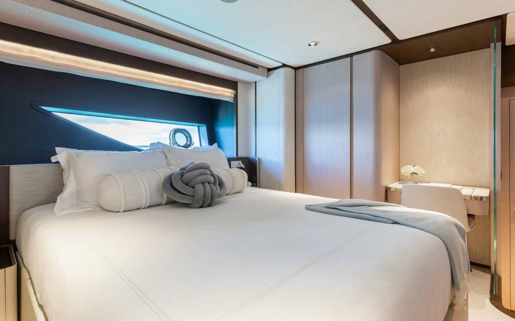 Further forward is the Queen VIP which is slightly elevated by a small step entry. The bed is positioned starboard to port with a window at the head of the bed affording superb natural light that traditional V-berths do not have. Ensuite bathroom features a shower stall and single sink.