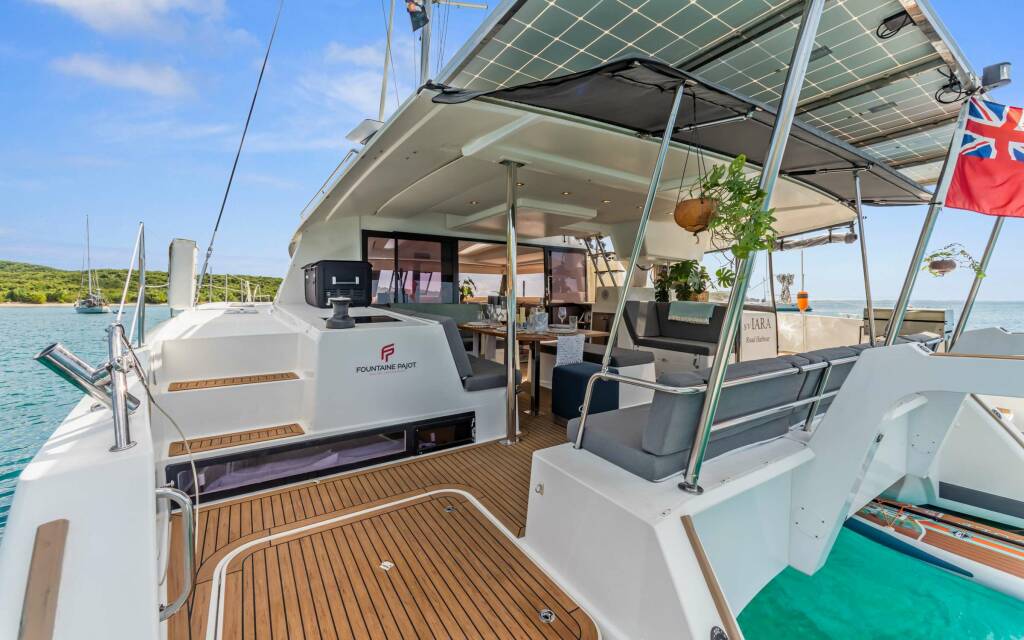 Luxus - Katamaran IARA, Baujahr 2017 liegt in Caribbean Virgin Islands (US/BVI), Caribbean Leewards vor Anker. Sie hat 3 Kabinen, bietet Platz für 6 Personen.
