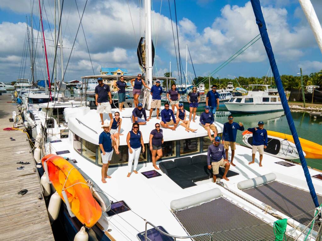 Luxus - Katamaran The Big LeBoatski, Baujahr 2025 liegt in Belize vor Anker. Sie hat 4 Kabinen, bietet Platz für 8 Personen.