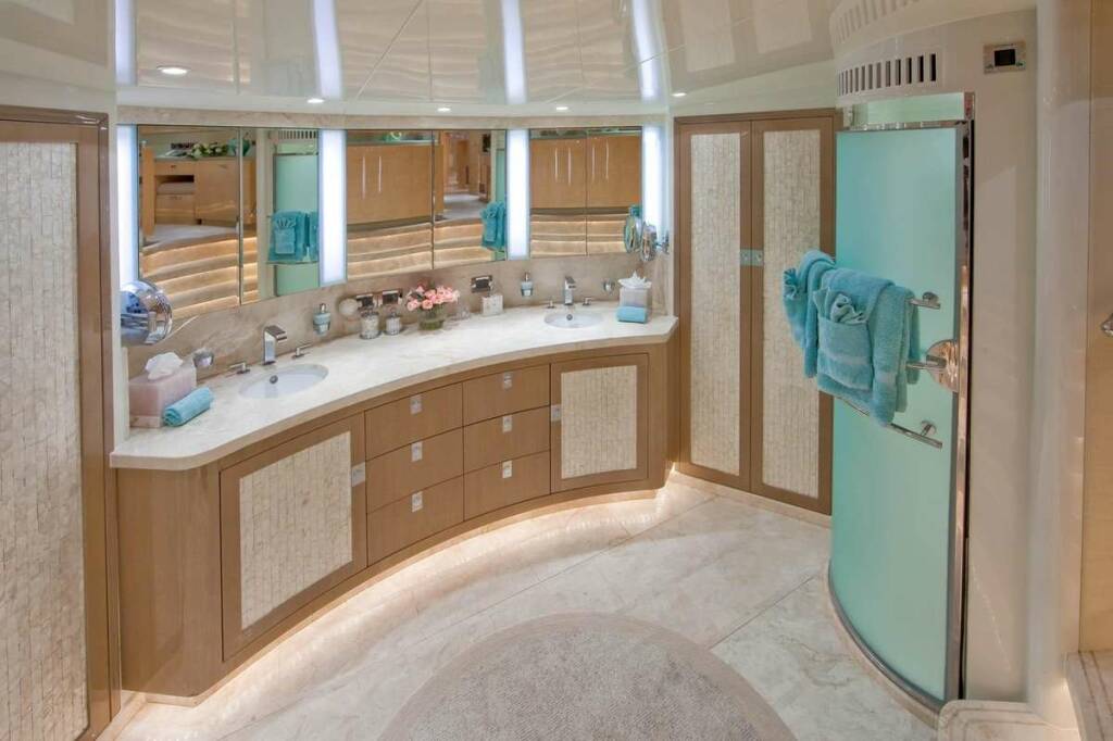The master stateroom will be the private retreat. Located on the main deck, guests are treated with a king-sized bed with a stunning ensuite and panoramic views of the island guests are anchored at. Walking downstairs there is a VIP stateroom with a king-sized bed, along with 2 mirrored Queen bed staterooms, which have an ensuite as well. Lastly, there is a twin stateroom with 2 single beds & an en-suite.