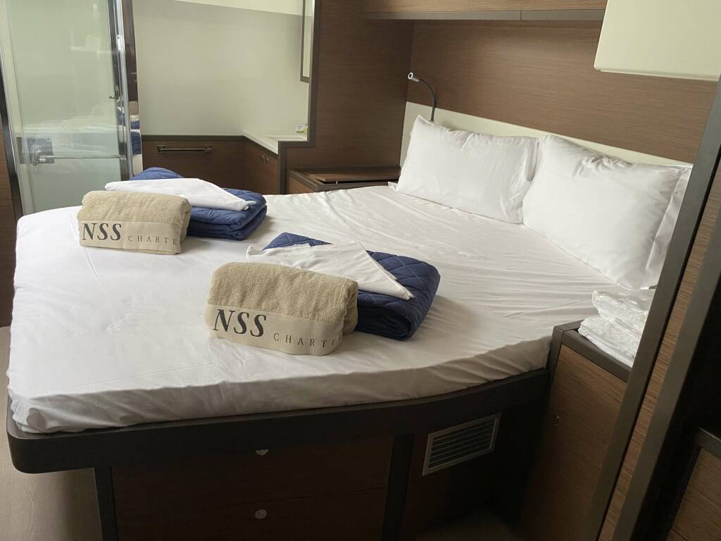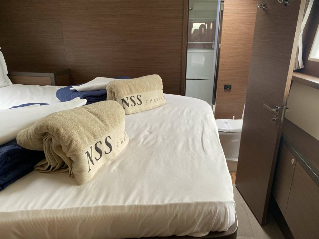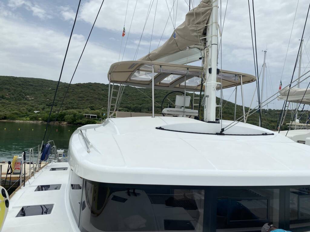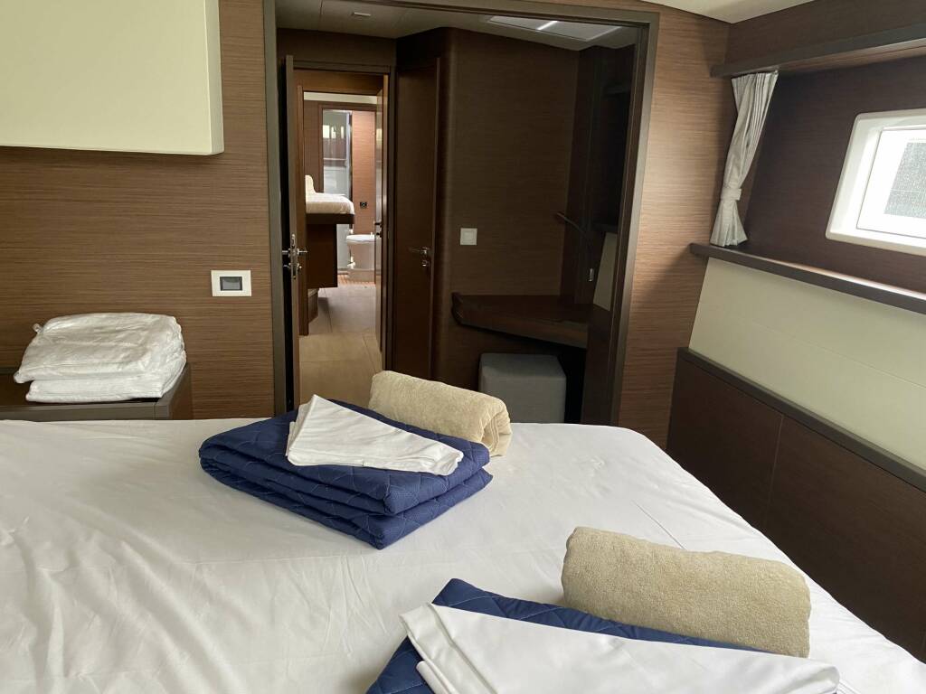 Luxus - Katamaran Big Daddy, Baujahr 2022 liegt in W. Med -Riviera/Cors/Sard. vor Anker. Sie hat 5 Kabinen, bietet Platz für 10 Personen.