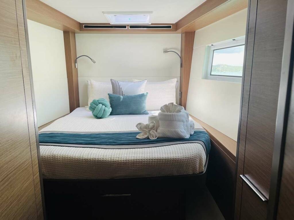 the crew takes the two interior (+2) mid-ship cabins allowing for 4 ensuite cabins for the guests.
