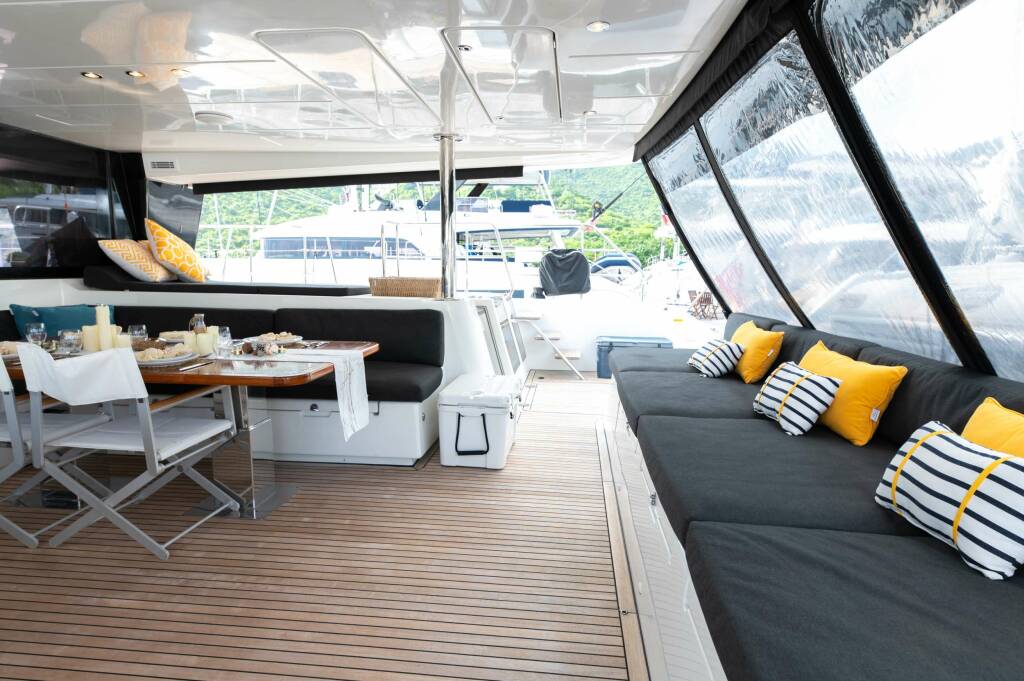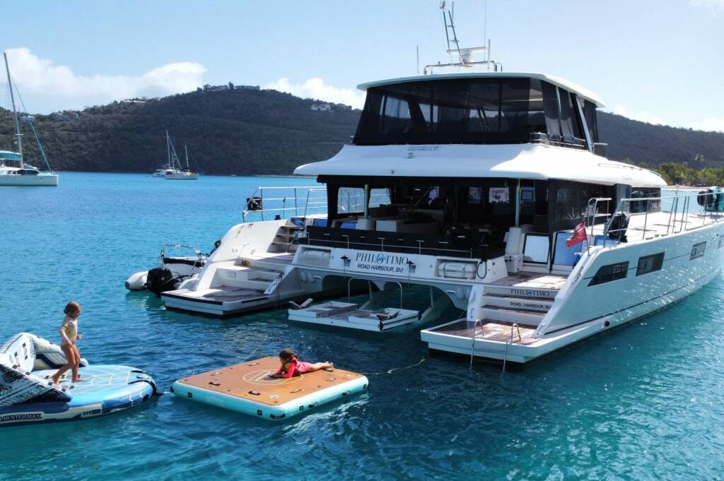 Luxus - Katamaran PHILOTIMO, Baujahr 2018 liegt in Caribbean Windwards, Caribbean Virgin Islands (BVI) vor Anker. Sie hat 3 Kabinen, bietet Platz für 6 Personen.