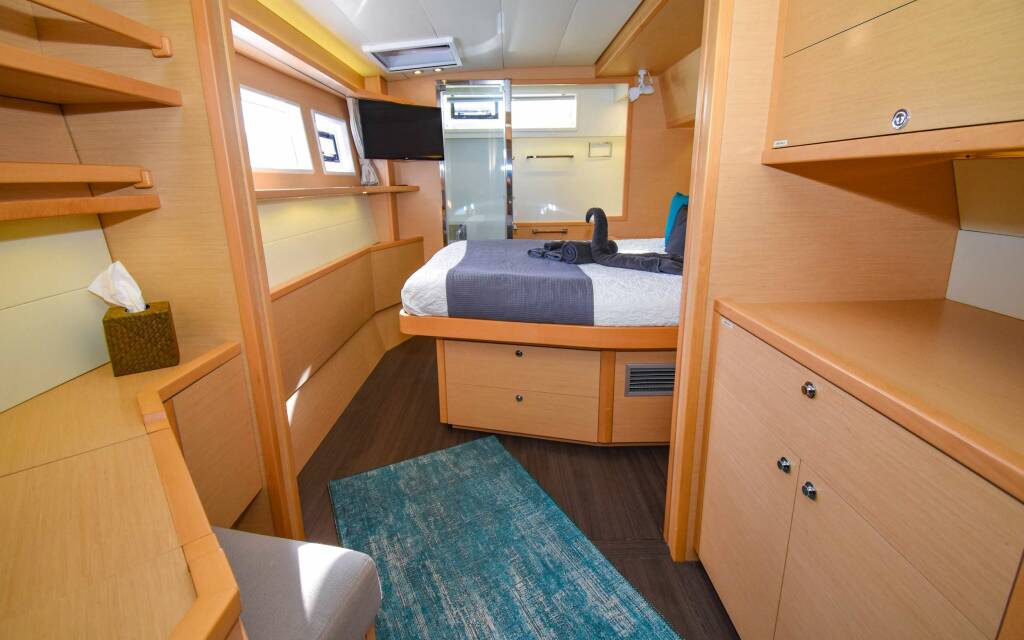 Accommodation: 3 queen cabins, private en-suite bath (electric head, wash basin and large stall shower), lots of storage and separate access directly to the aft deck.