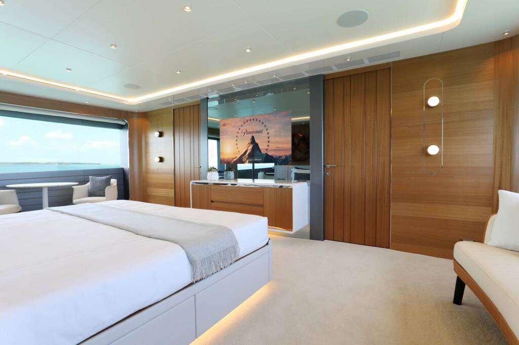Accommodation: A SALT WEAPON hosts 5 staterooms to accommodate up to 10 guests. The master on the main deck features a King-sized bed, office space and his and her en sutie with adjoining shower. The remaining four staterooms are located below deck and comprise of 2 VIP's and 2 twin convertible staterooms, all with their own en suites.