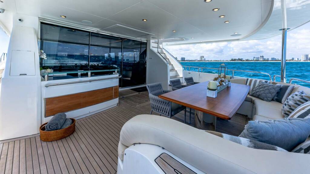 Accommodation: - Spacious main aft deck with dining for 8 guest and stand-up bar.