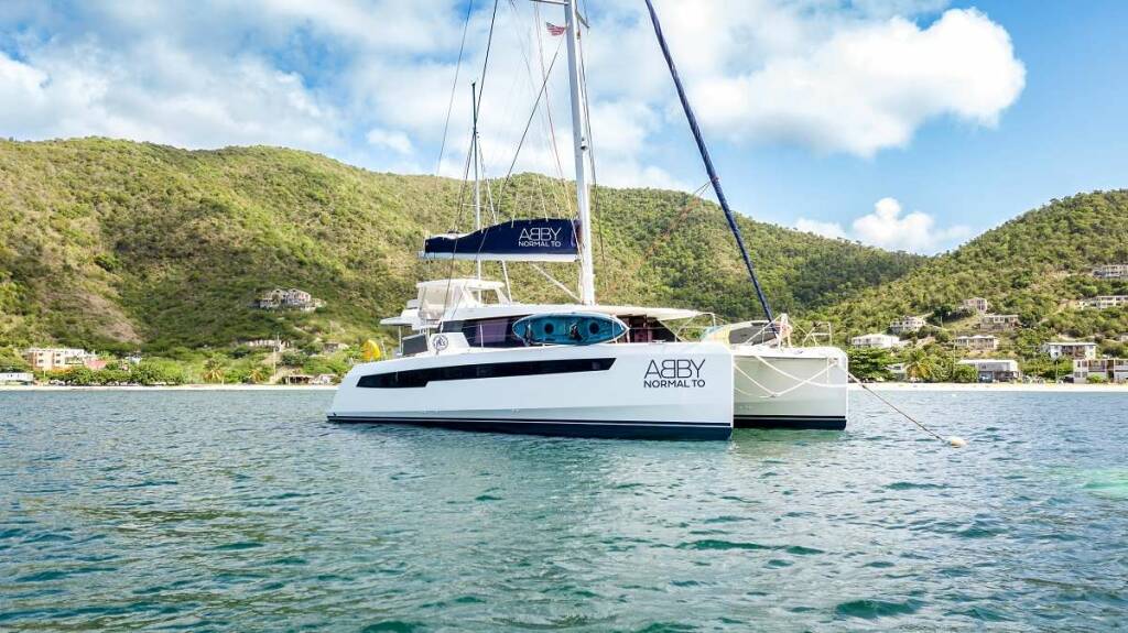 Luxus - Katamaran ABBY NORMAL TO, Baujahr 2019 liegt in Caribbean Virgin Islands (BVI) vor Anker. Sie hat 4 Kabinen, bietet Platz für 8 Personen.