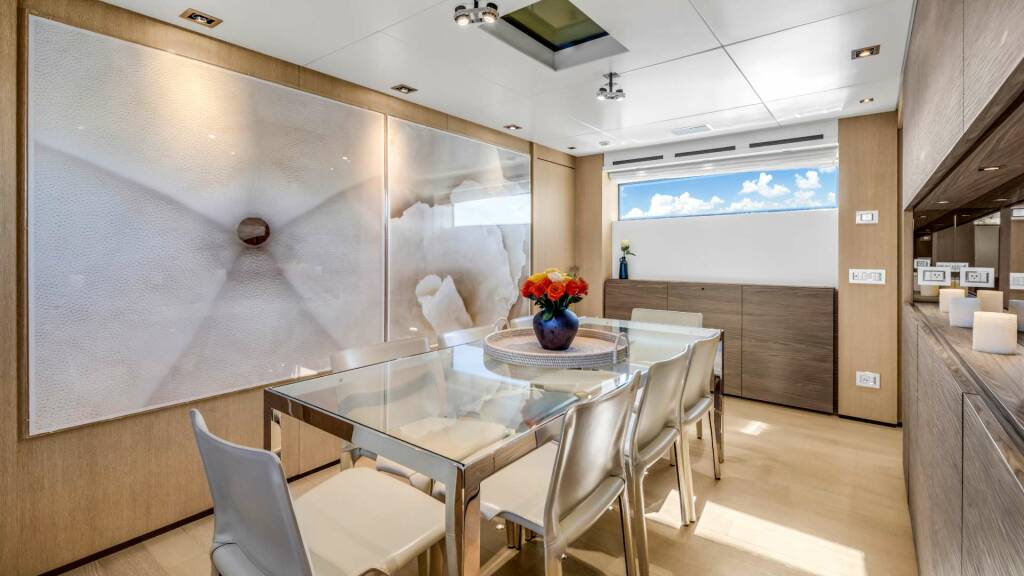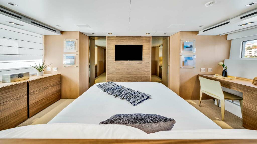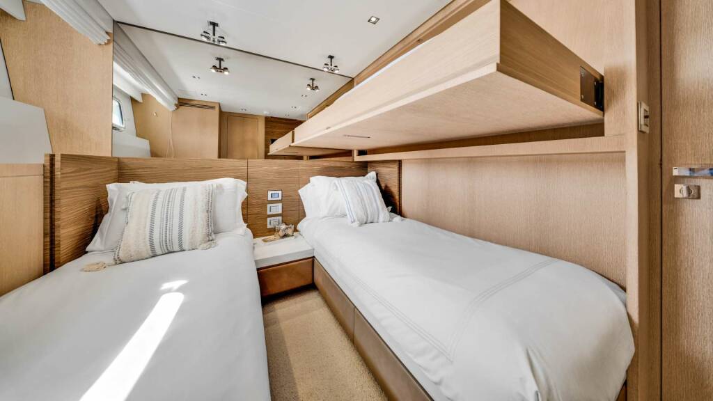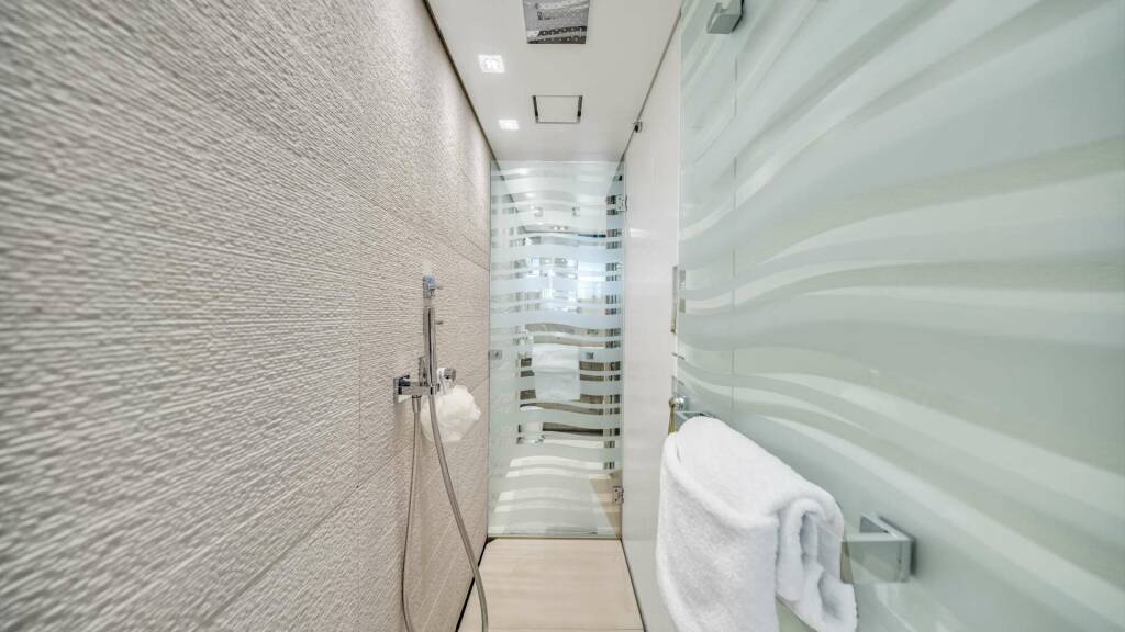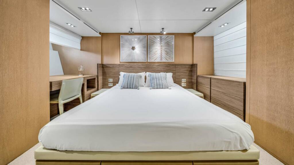 Accommodation: The four-stateroom layout comfortably accommodates up to ten guests, featuring a full-beam master suite, a spacious VIP cabin, and two twin guest cabins — each with its own private en-suite bathroom for the ultimate in privacy and comfort.