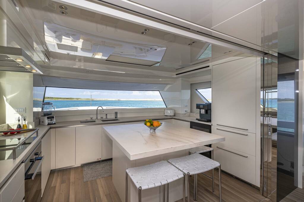 Accommodation: Blending style, luxury, and utility, NO MATTER WHAT is a stunning example of Sanlorenzo’s highly successful SX crossover line built to encompass the best features of both flybridge and explorer yachts. Delivering a seamless connection between her exterior and interior, NO MATTER WHAT’s modern and elegant interior design offers a layout that takes full advantage of her 23’ 8” beam, enthralling guests with free-flowing open spaces that are luxurious, spacious, and relaxing.