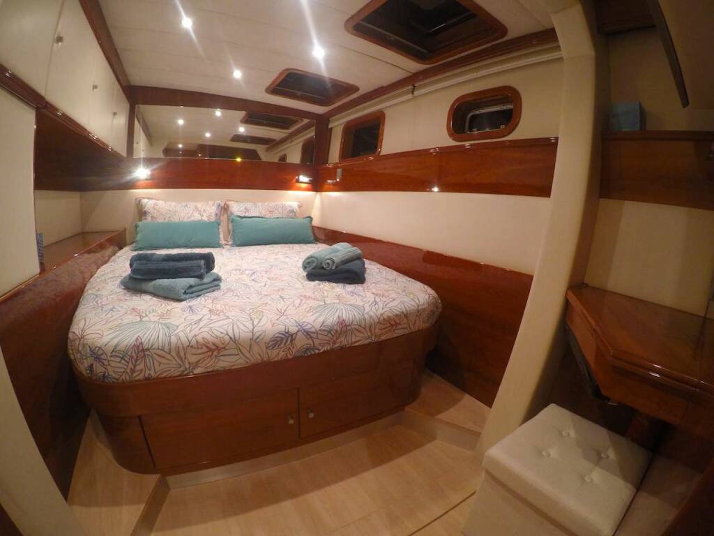 In addition to his sailing achievements, the captain has a solid background in mechanical engineering and is proficient in all onboard electronic instruments. This allows him to combine efficient navigation with safety while catering to the wishes and desires of the guests.